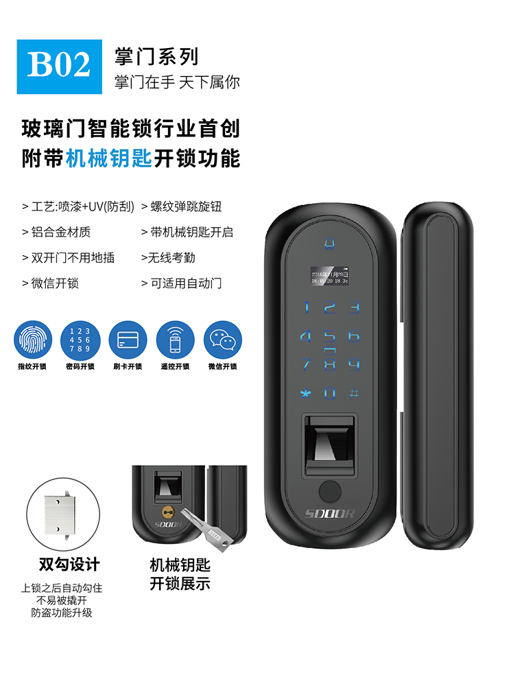 索掌门B02玻璃门指纹锁