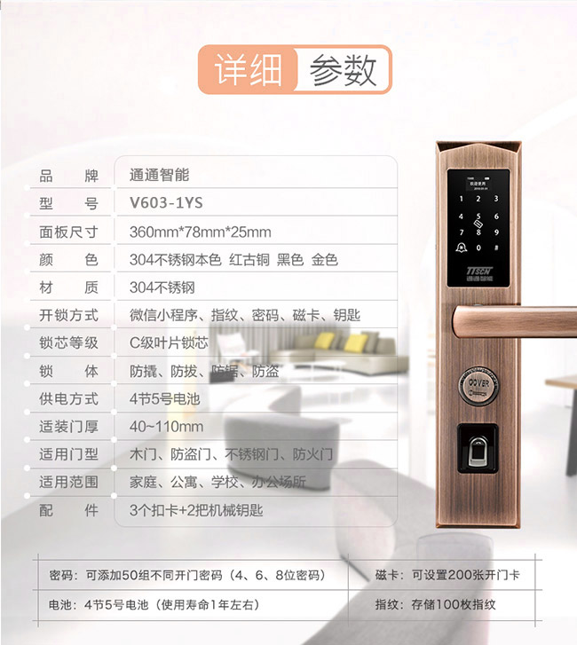 开锁方式:微信小程序、指纹、密码、刷卡、钥匙